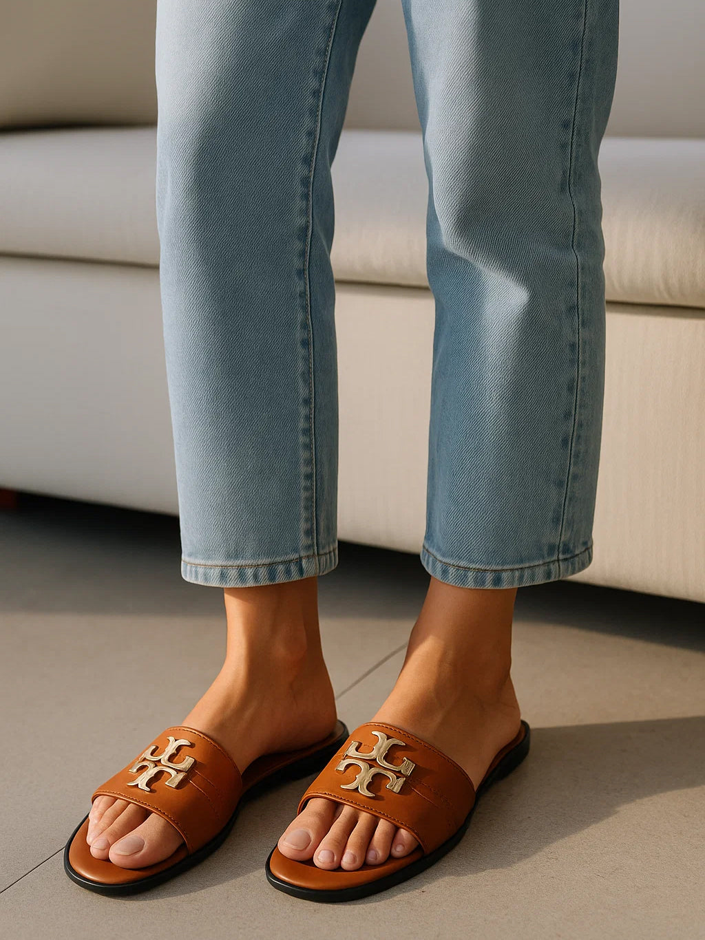 The Heritage Monogram T-Strap Sandals Bring an element of classic luxury to your everyday rotation...